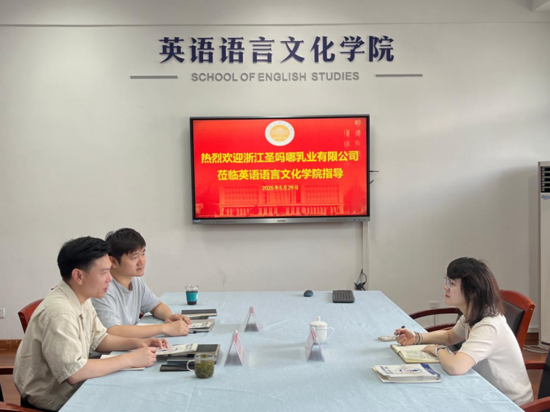 5月29日,浙江圣吗哪乳业有限公司校招经理曾瑒到访英文学院,学院党委副书记、纪委书记欧万彬,学工办负责人顾蒙参加座谈会。双方围绕乳制品行业人才需求、外语类学生职业发展等方面展开深入交流。