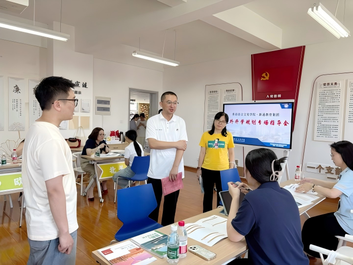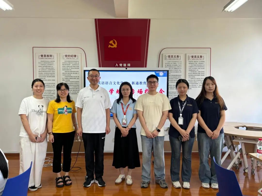70周年校庆,英文学院特别推出“名企进校园”系列宣讲会。7月2日下午,新通教育集团国际升学规划专场指导会于融A316顺利举行。院长邢富坤、副院长郑淑贞、就业负责人吴小慧在现场与企业代表深入交流。