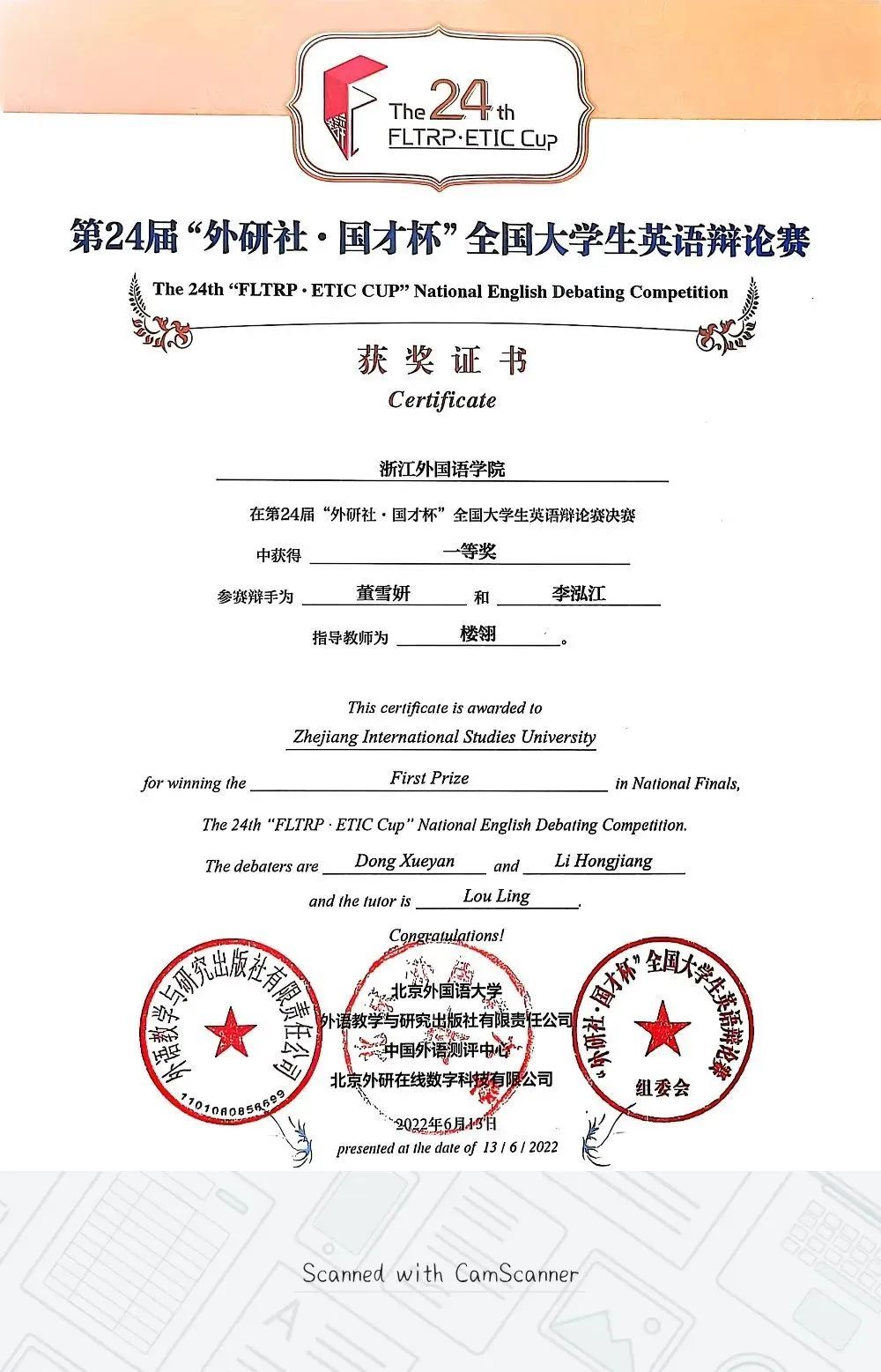 学院学生在第24届“外研社·国才杯”全国大学生英语辩论赛决赛中获得一等奖
