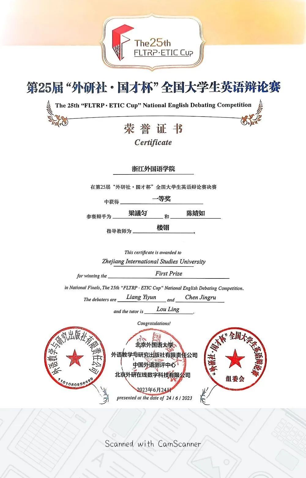 学院学生在第25届“外研社·国才杯”全国大学生英语辩论赛决赛中获得一等奖