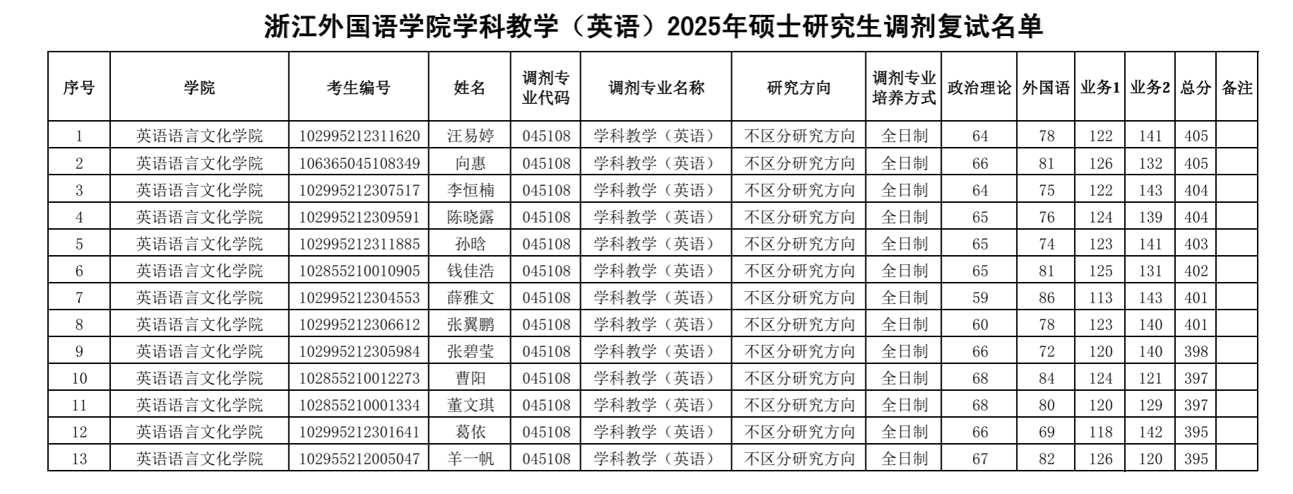 国产av 2025年硕士研究生招生调剂考生复试名单