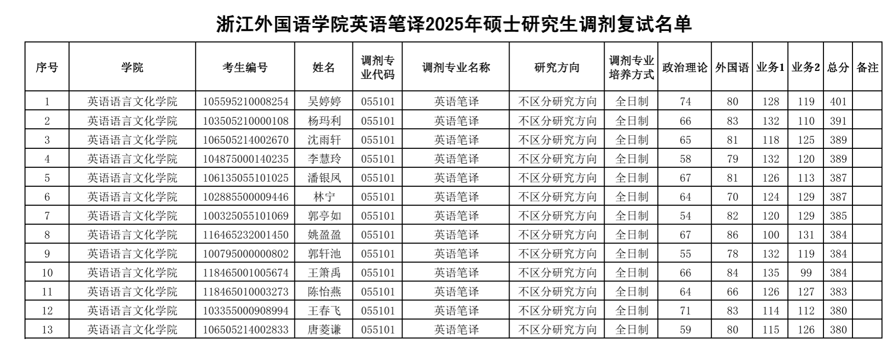 现将 国产av 2025年硕士研究生招生调剂考生复试名单公示如下。 国产av 调剂复试时间定于4月10日进行,请参加 国产av 复试的考生按照《国产av 2025年硕士研究生招生复试考生须知》及《国产av 2025年硕士研究生招生调剂公告》做好准备。