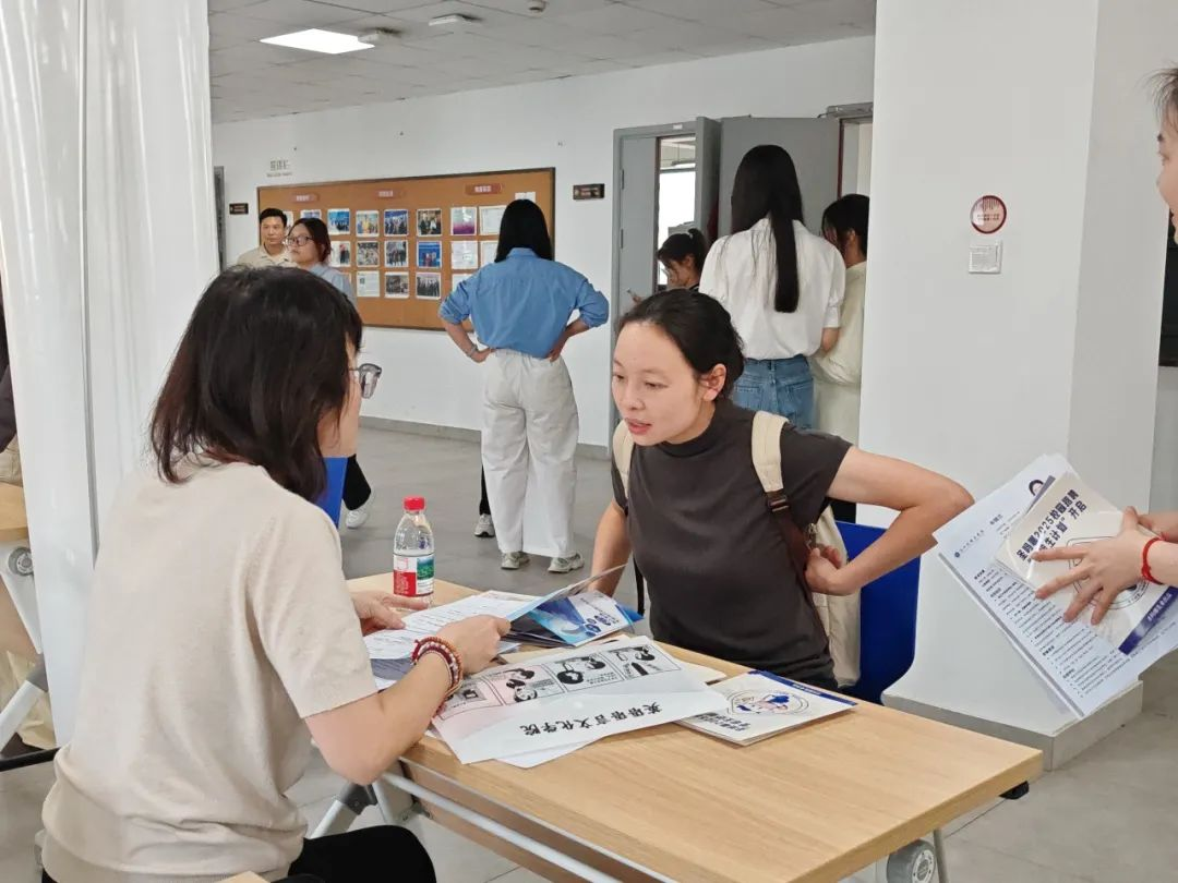 英文学院于融A三楼公共文化空间组织开展“小而精、专而优”英语类专场实习就业双选会。现场通过多元化的活动设计,既为学生搭建了优质的实习就业平台,又有效提升了学生的职场竞争力,吸引学院2025届、2026届毕业生踊跃参与。学院领导班子、专业教师及辅导员在为学生提供现场指导的同时,也与用人单位展开了深度交流。
