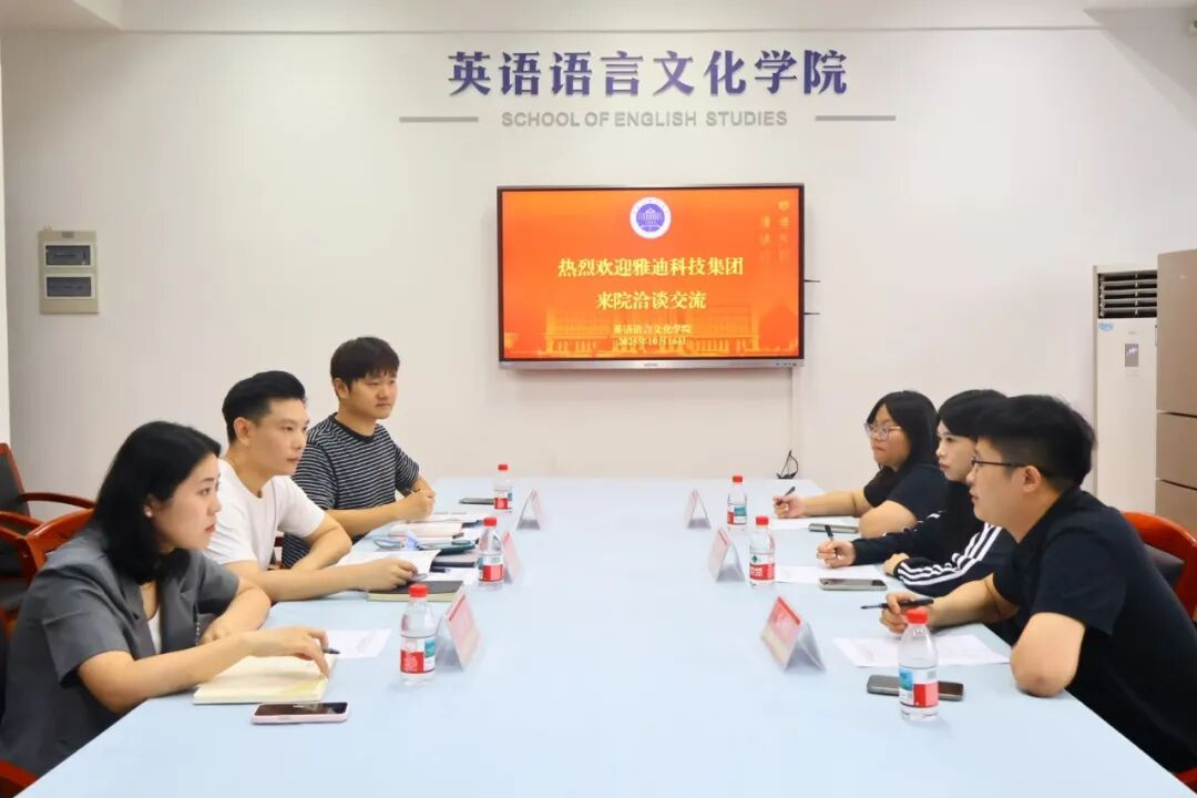 近日,雅迪科技集团海外事业部校招负责人张永富,人资经理李芳、贺舒雅来院交流洽谈,英文学院党委副书记、纪委书记欧万彬,学工办负责人顾蒙,就业负责人吴小慧参与座谈。